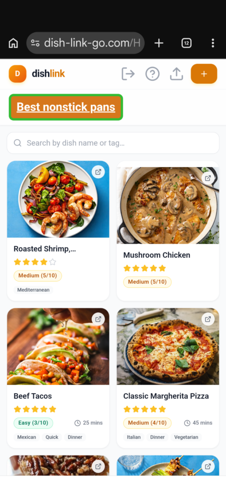 DISH LINK – RECIPE SAVER AND LAUNCHER
